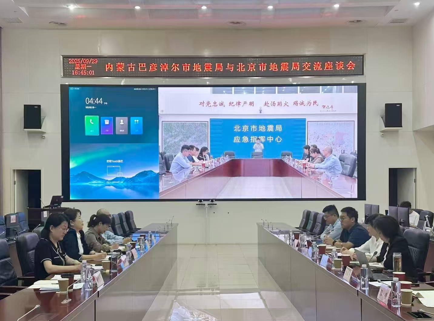 然后,调研组参观了北京市地震局震灾风险防治中心、宣教中心、预警中心,并与北京市地震局党委和五个支部围绕“党建引领 助推发展”就如何更加高质量为地方经济社会发展提供防震减灾力量进行座谈交流。通过深入了解北京市党建融合防震减灾救灾工作开展情况,我局构建起跨省级党建与业务工作交流共享机制,推动完善跨区域防震减灾协作发展机制,为进一步答好习近平总书记“大震之问”,合作推进防灾减灾事业现代化建设奠定了坚实基础。