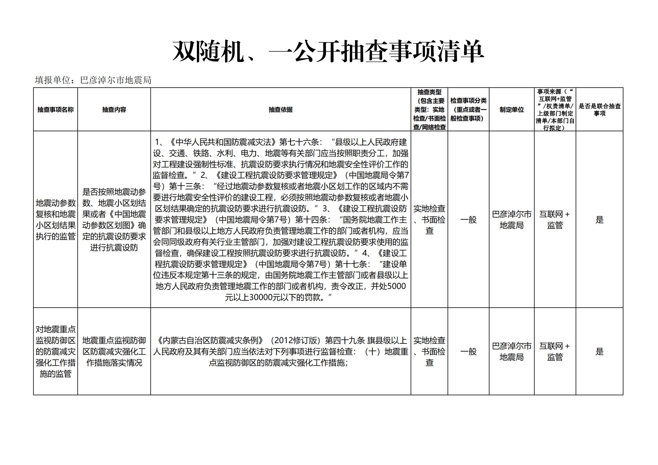 双随机、一公开抽查事项清单